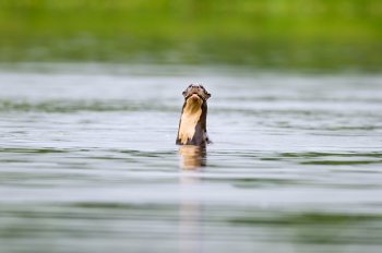 Giant River Otter Swims Anangucocha Lake